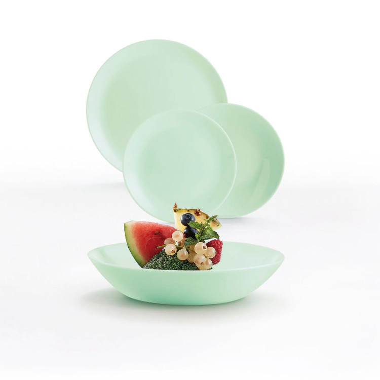 اقلام به صورت سرویس ۲۶ پارچه شامل برنج خوری، خورشت خوری، پیش دستی، پیاله ماست، کاسه سالاد و دیس گرد لبه دار.
