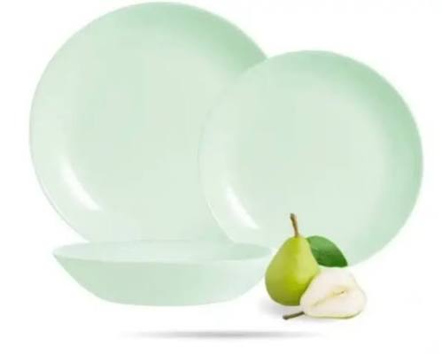 اقلام به صورت سرویس ۲۶ پارچه شامل برنج خوری، خورشت خوری، پیش دستی، پیاله ماست، کاسه سالاد و دیس گرد لبه دار.