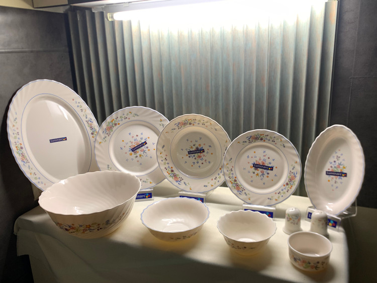 طرح نایاب و قشنگ شامل برنج خوری، خورشت خوری، پیش دستی، پیاله ماست، دیس، کاسه سالاد سایز ۲۴، کاسه سالاد سایز ۲۷، الویه خوری، نمکدان، سس خوری، فنجان نعلبکی، قابلمه ۳ سایز، قوری، تابه، پارچ و آبگوشت خوری.